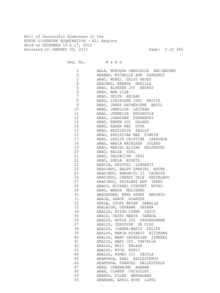 Nle 12 2012 Results Pdf Licensure Manila